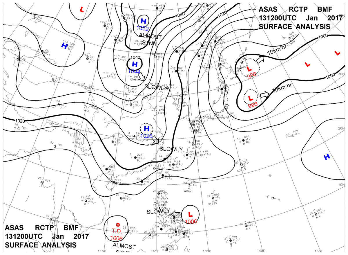 2017/01/13 12z sfcmap 天氣圖
