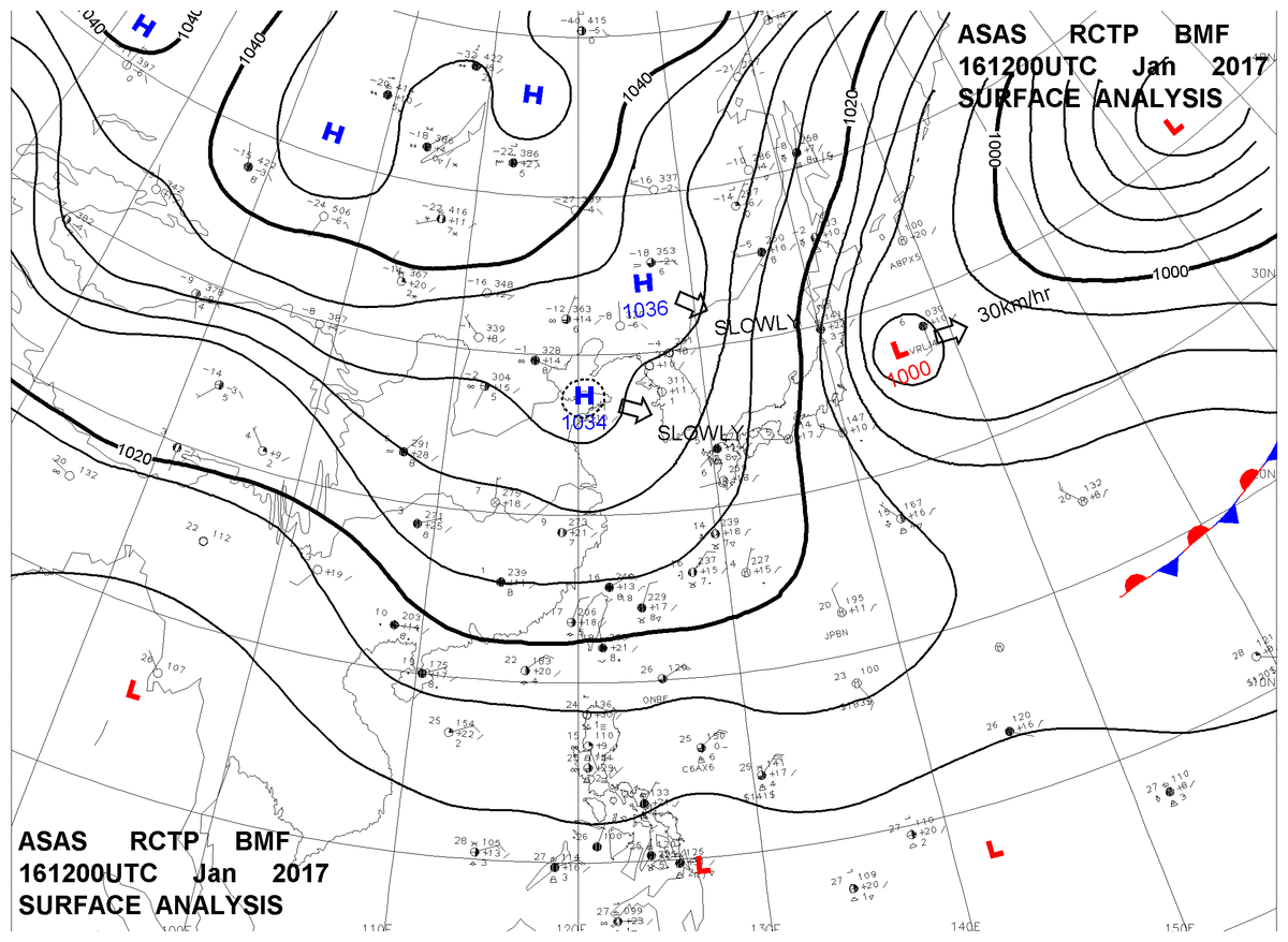 2017/01/16 12z sfcmap 天氣圖