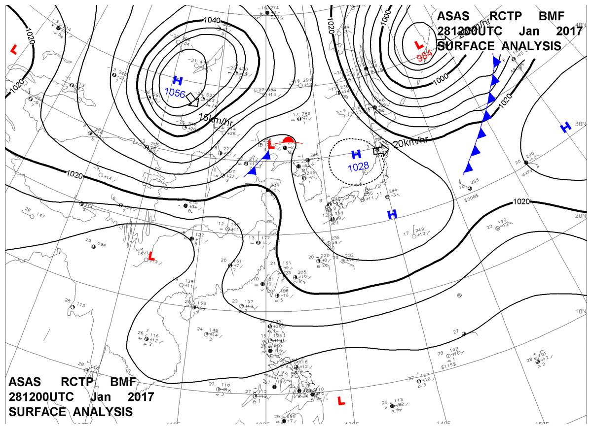 2017/01/28 12z sfcmap 天氣圖