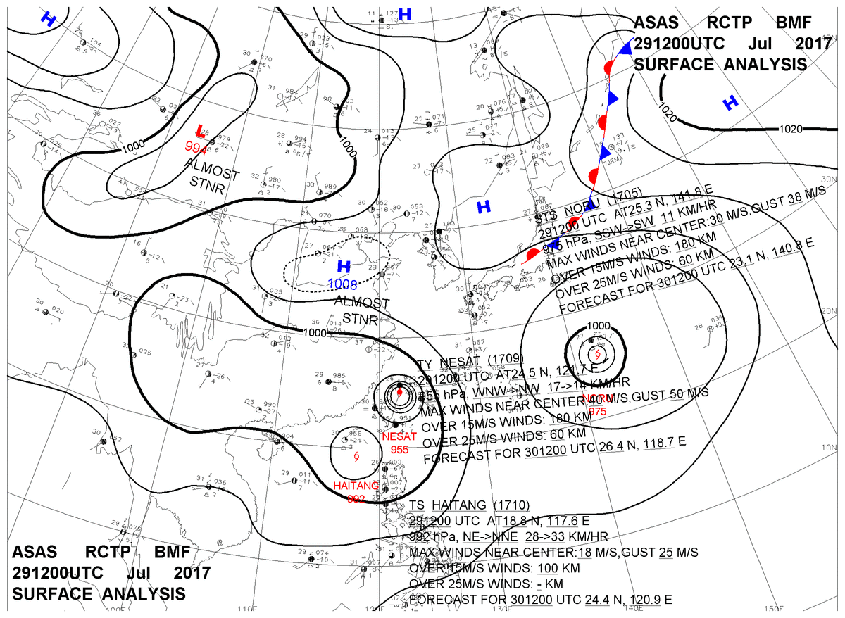 2017/07/29 12z sfcmap 天氣圖