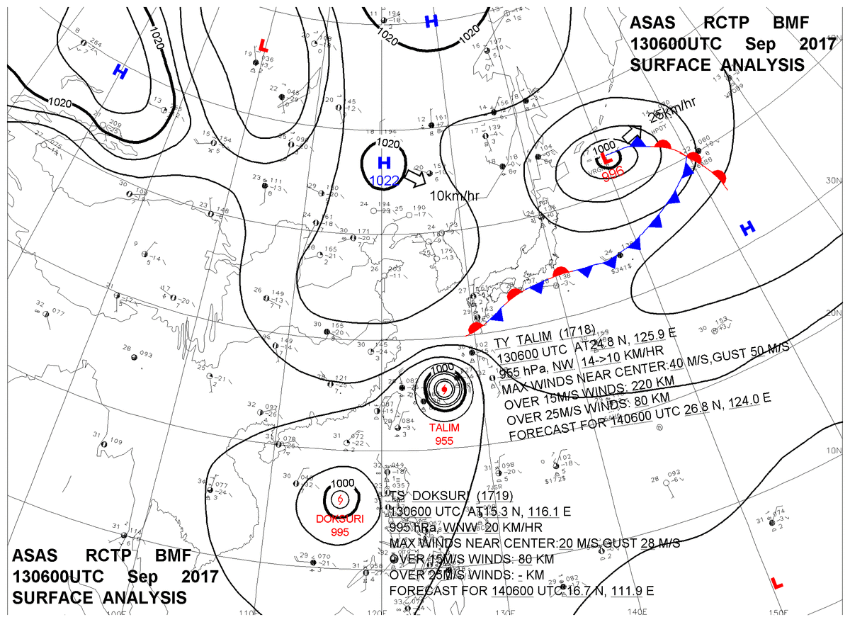 2017/09/13 06z sfcmap 天氣圖