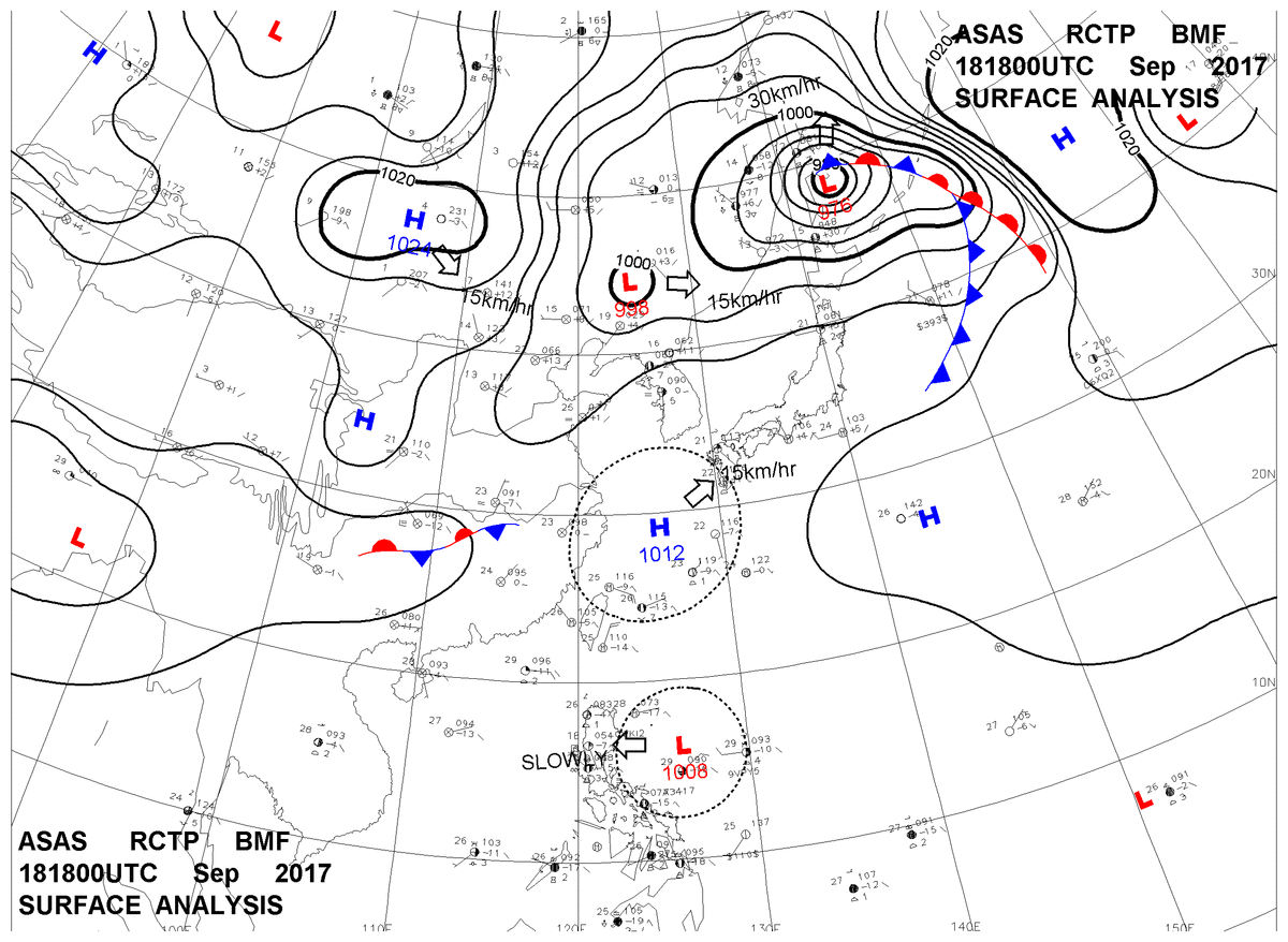 2017/09/18 18z sfcmap 天氣圖
