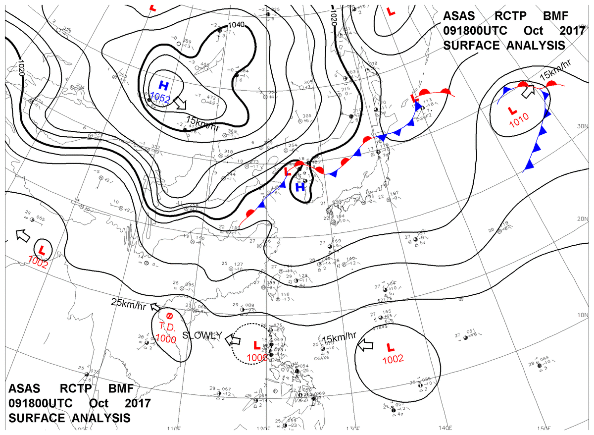 2017/10/09 18z sfcmap 天氣圖
