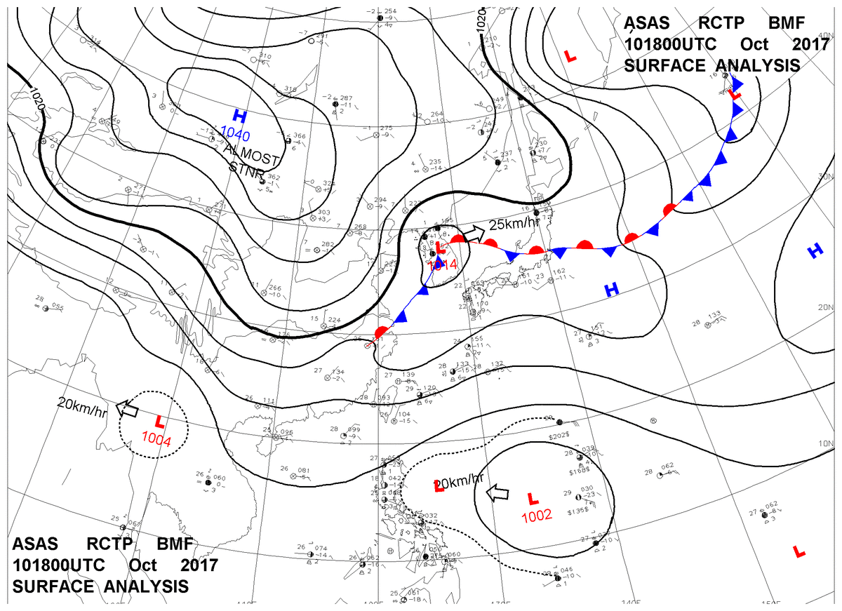 2017/10/10 18z sfcmap 天氣圖