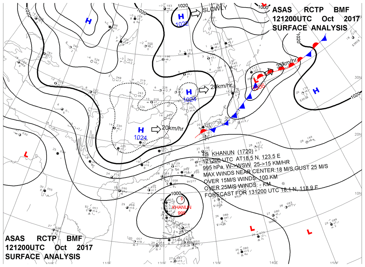 2017/10/12 12z sfcmap 天氣圖