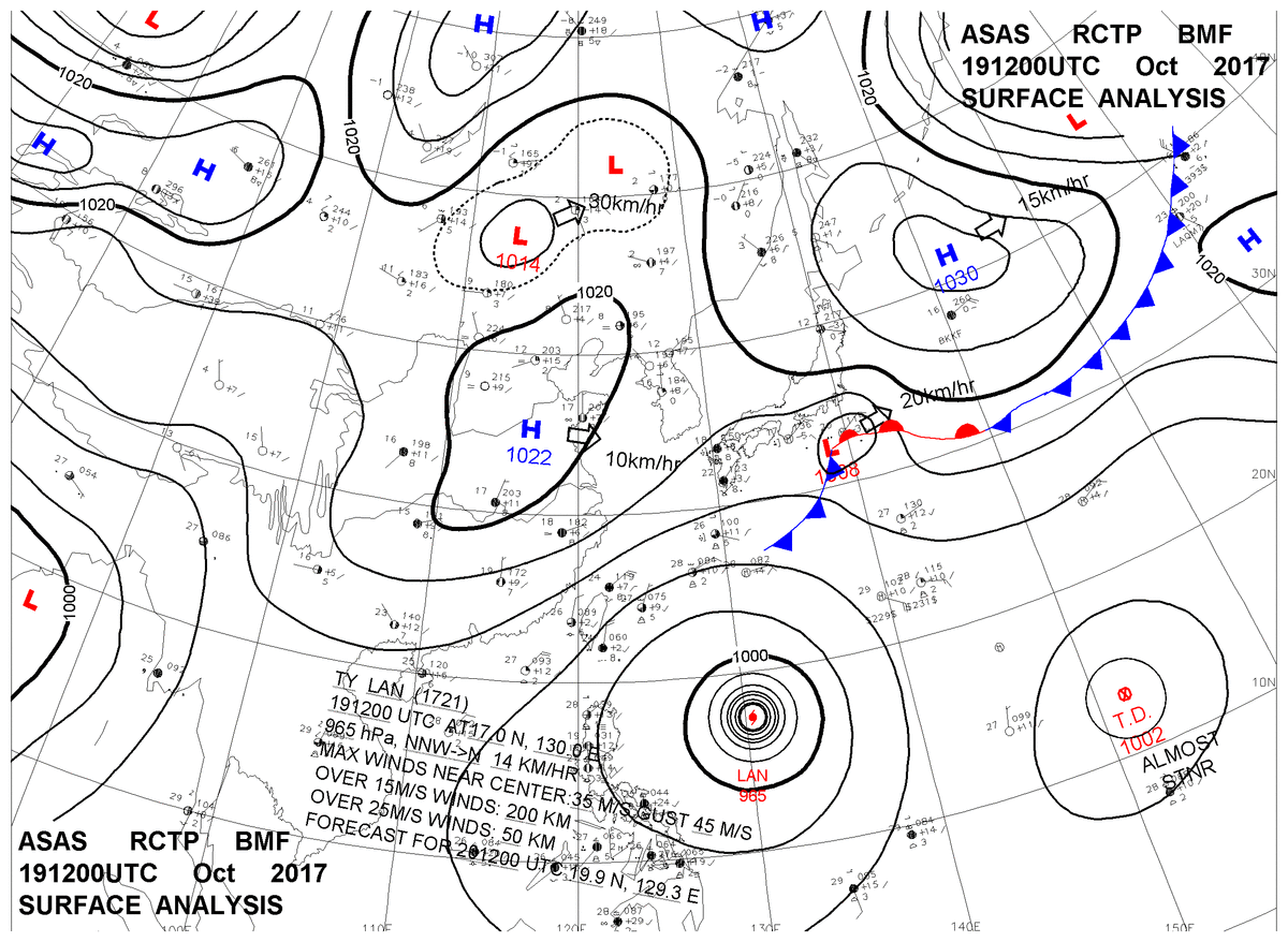 2017/10/19 12z sfcmap 天氣圖
