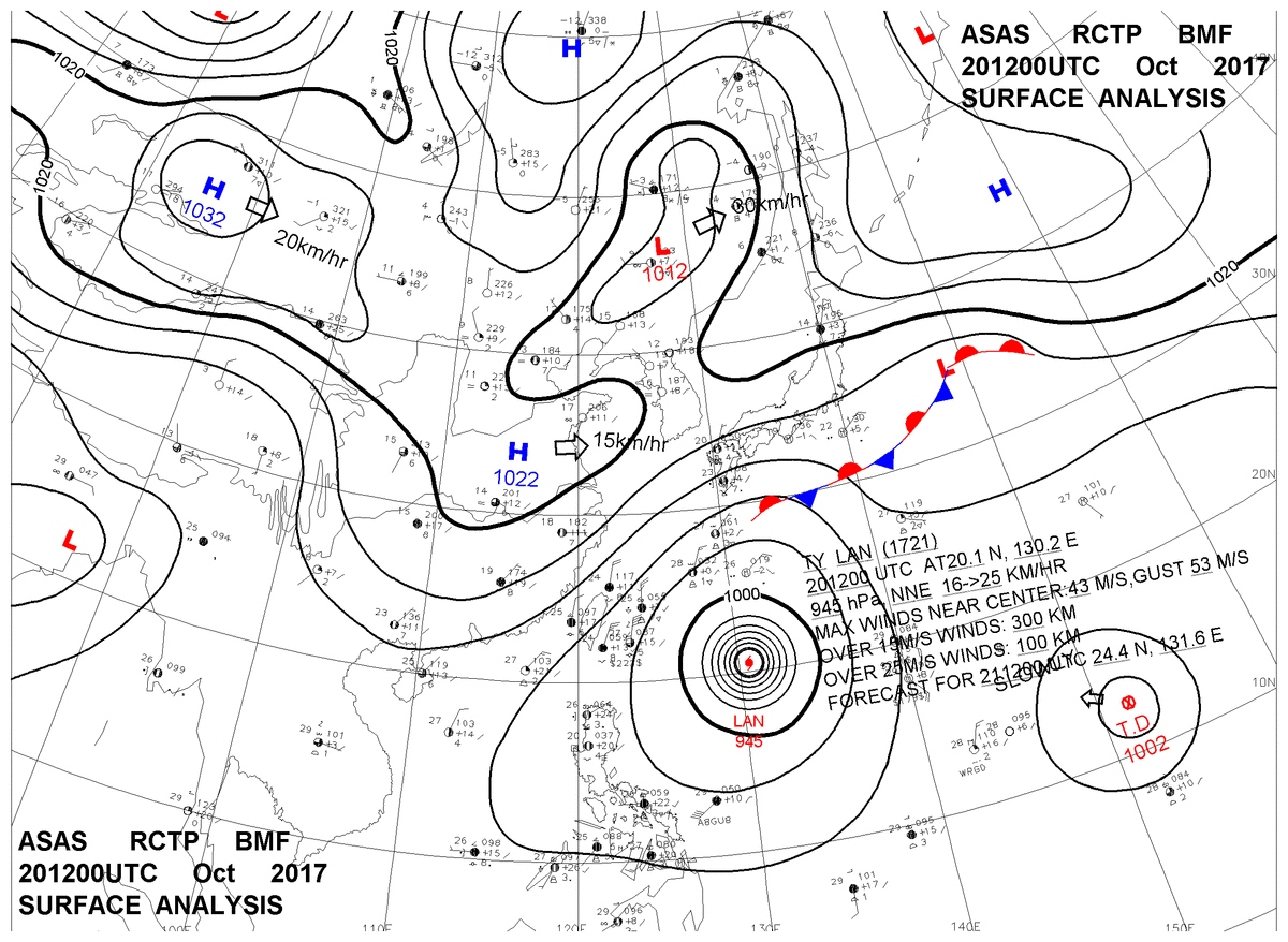 2017/10/20 12z sfcmap 天氣圖