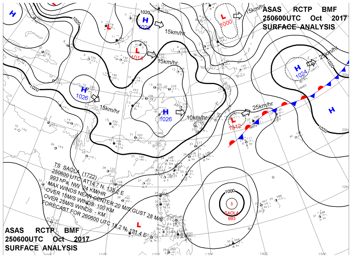 2017/10/25 06z sfcmap 天氣圖