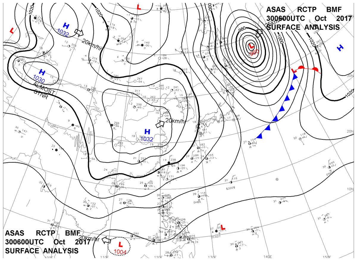 2017/10/30 06z sfcmap 天氣圖