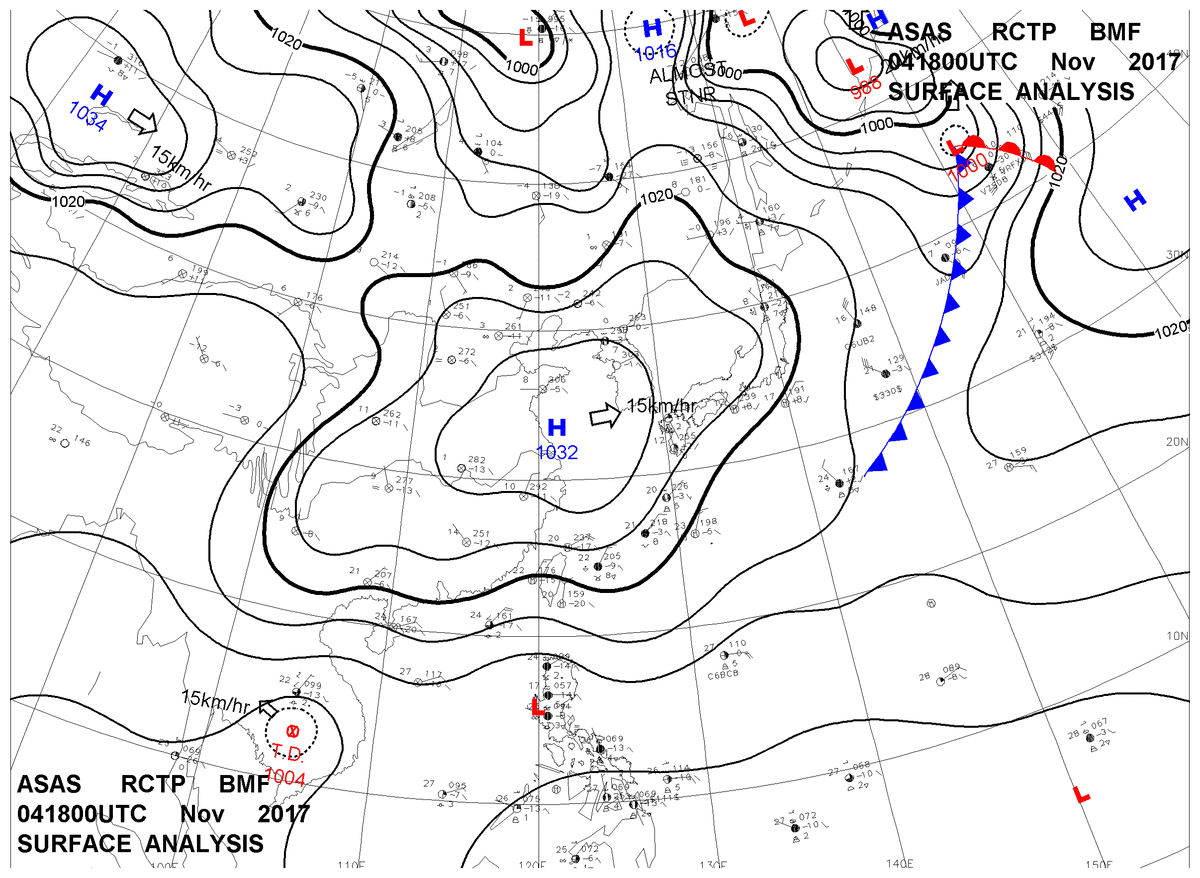 2017/11/04 18z sfcmap 天氣圖