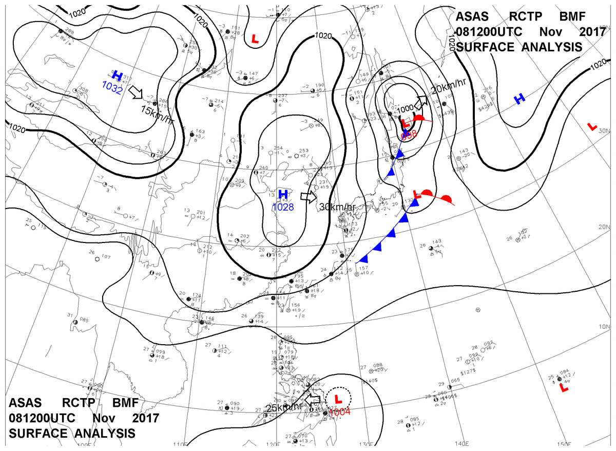 2017/11/08 12z sfcmap 天氣圖