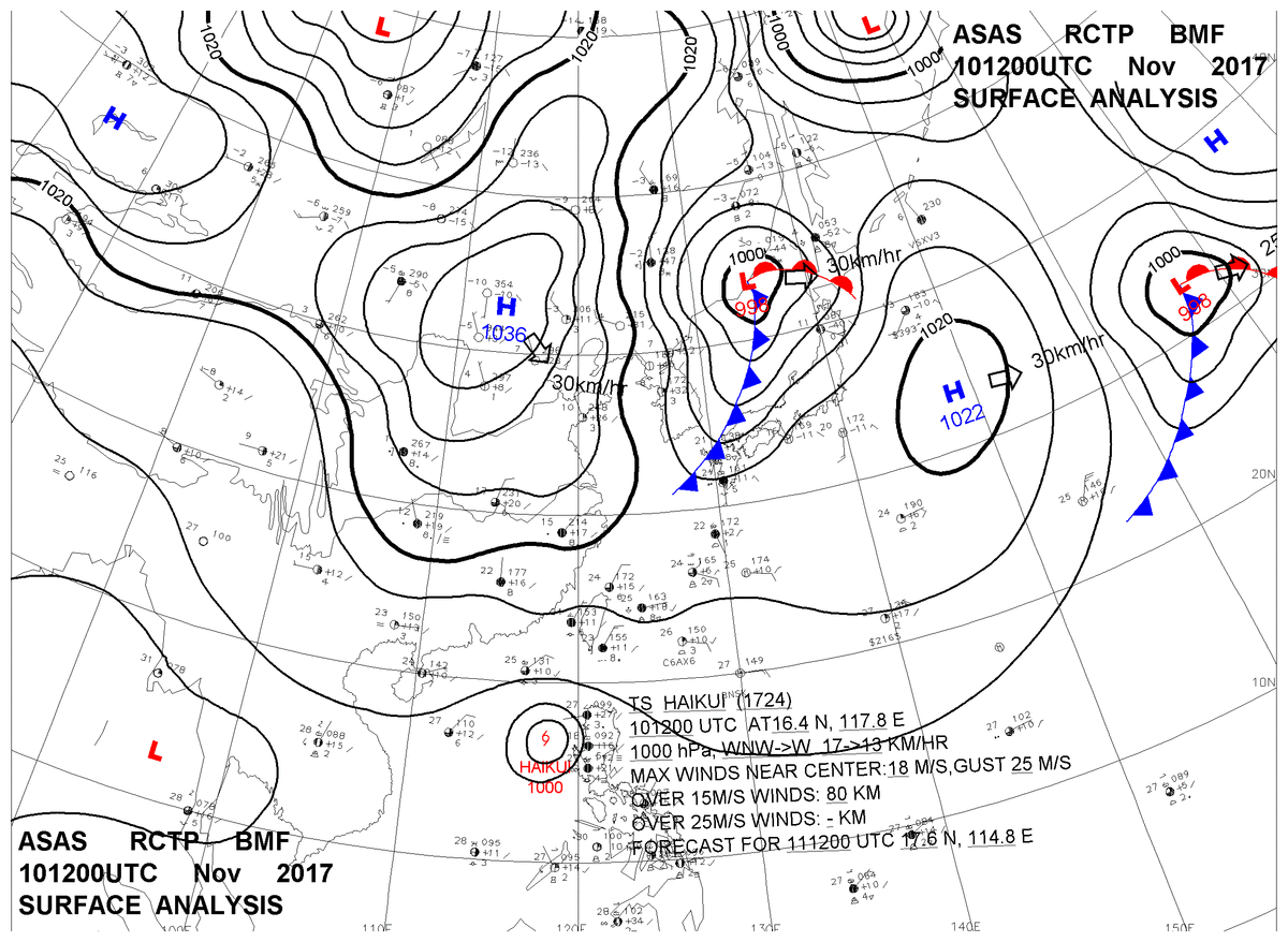 2017/11/10 12z sfcmap 天氣圖
