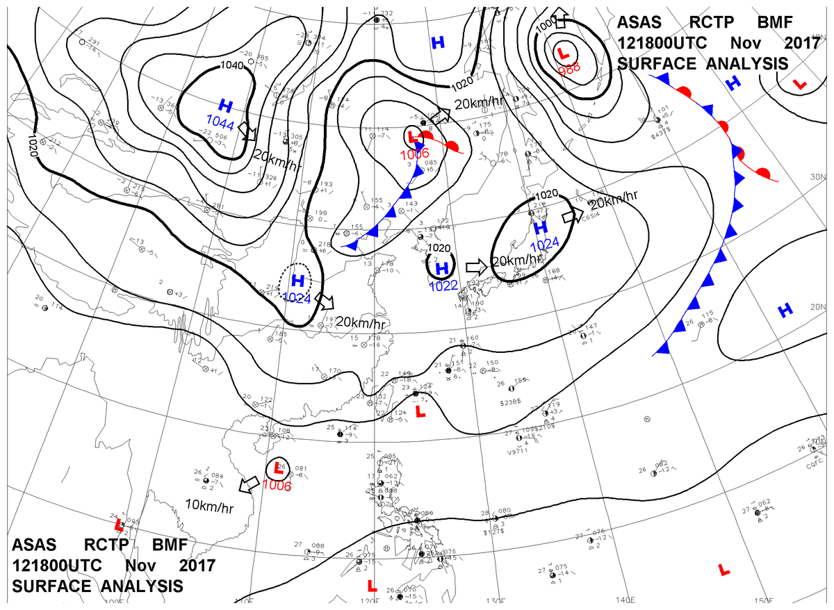 2017/11/12 18z sfcmap 天氣圖