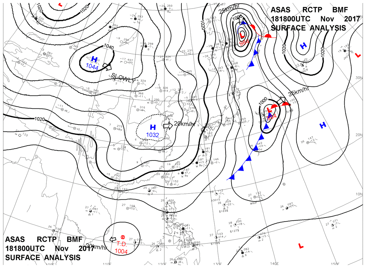 2017/11/18 18z sfcmap 天氣圖