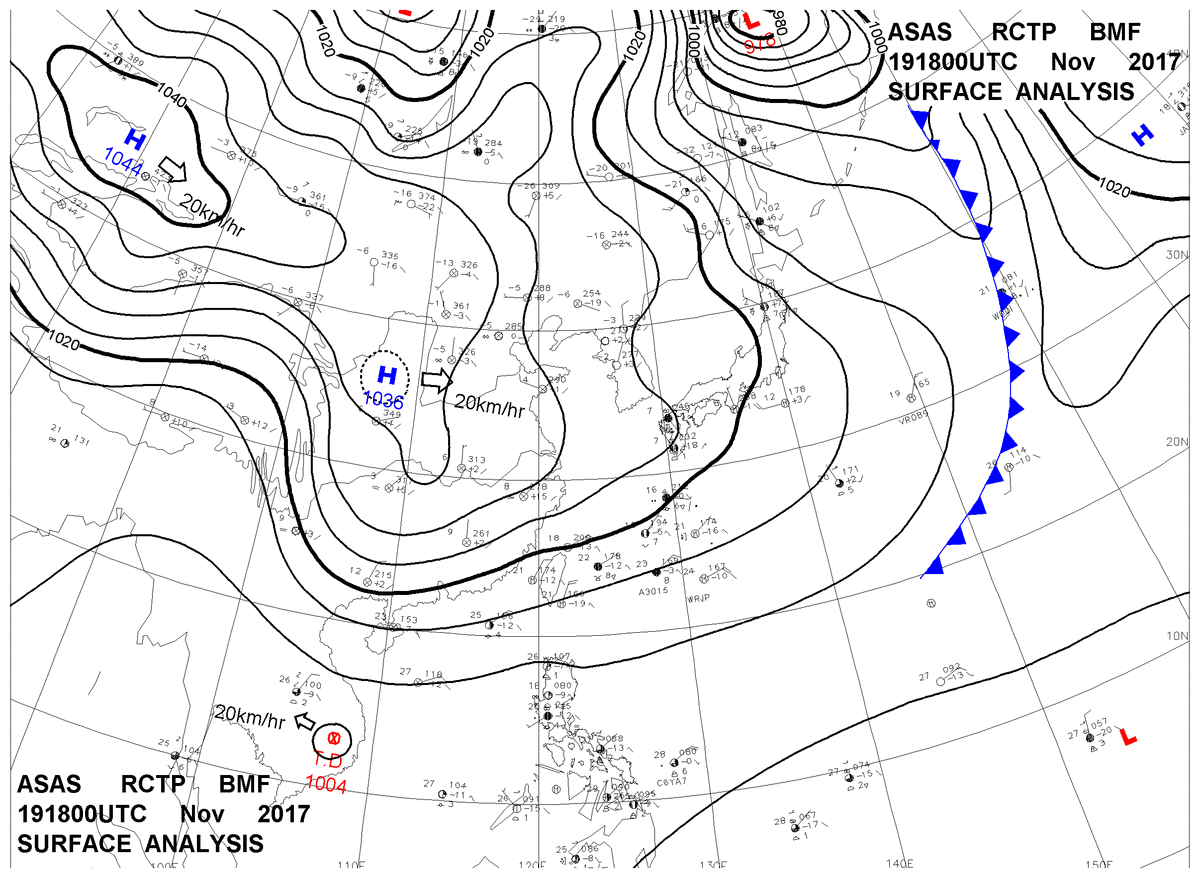 2017/11/19 18z sfcmap 天氣圖