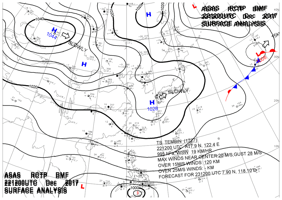 2017/12/22 12z sfcmap 天氣圖
