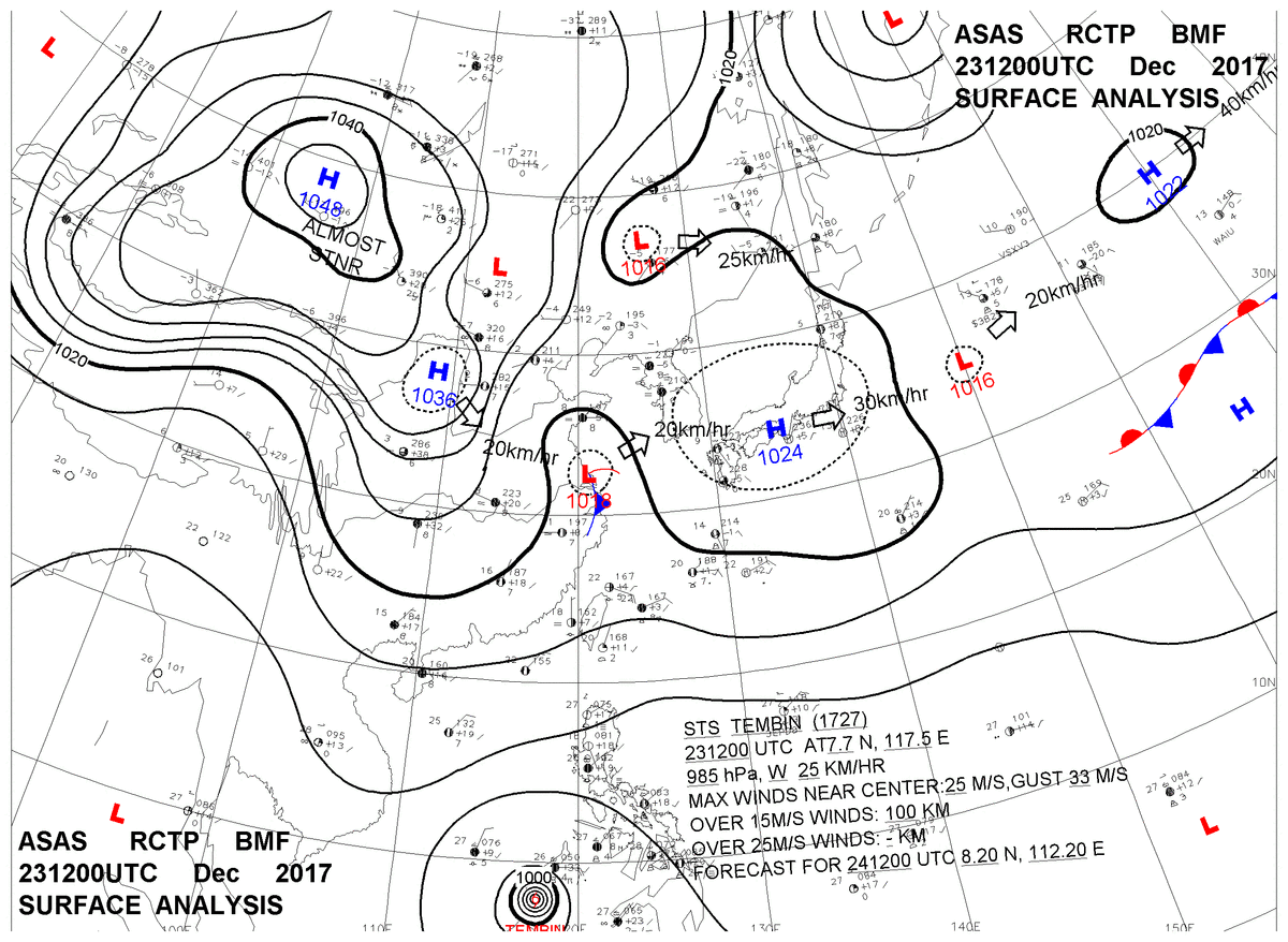 2017/12/23 12z sfcmap 天氣圖