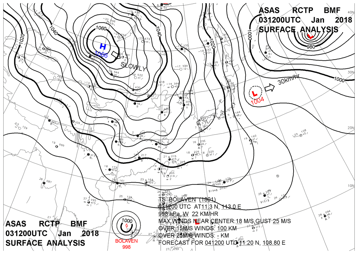 2018/01/03 12z sfcmap 天氣圖