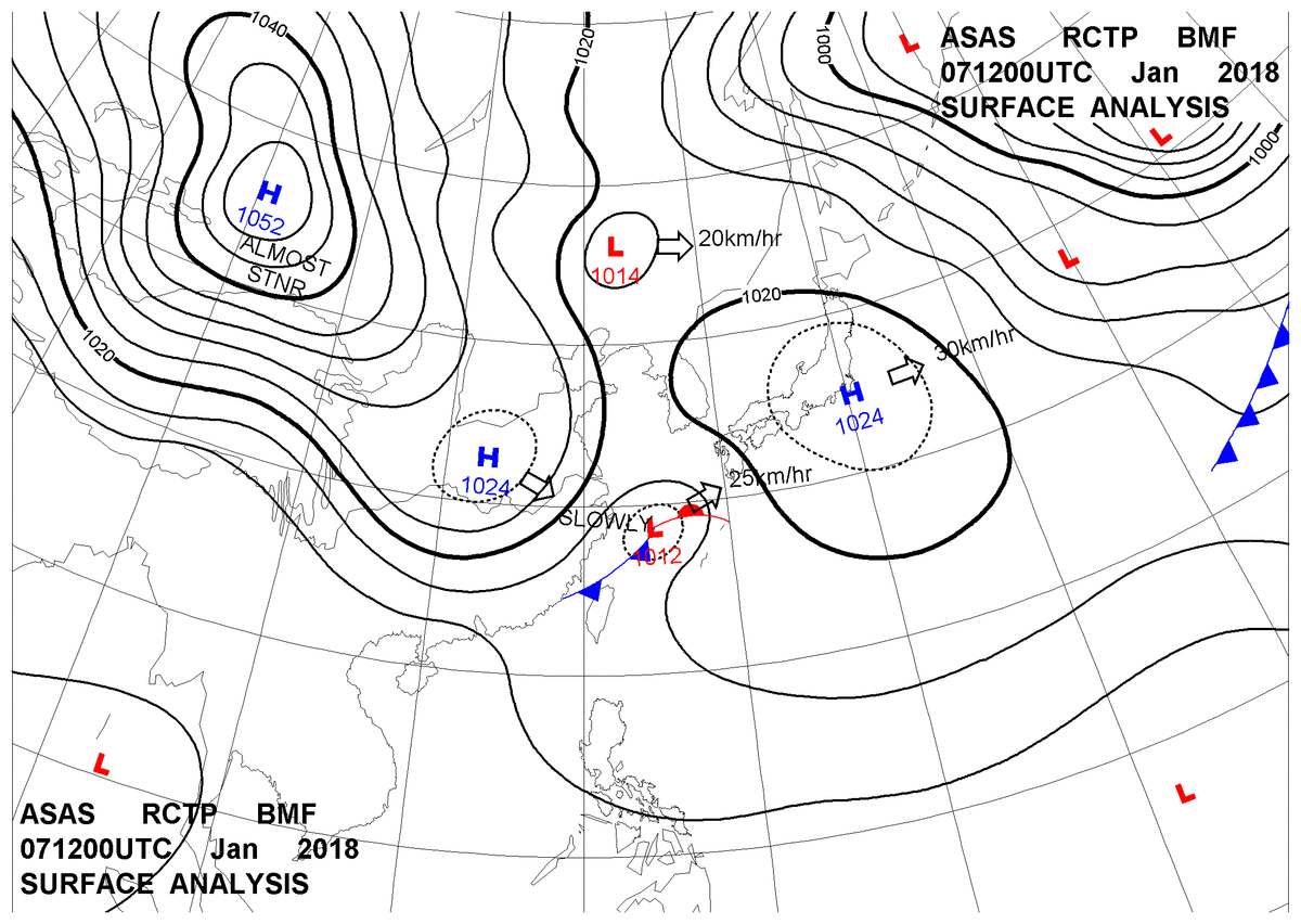 2018/01/07 12z sfcmap 天氣圖