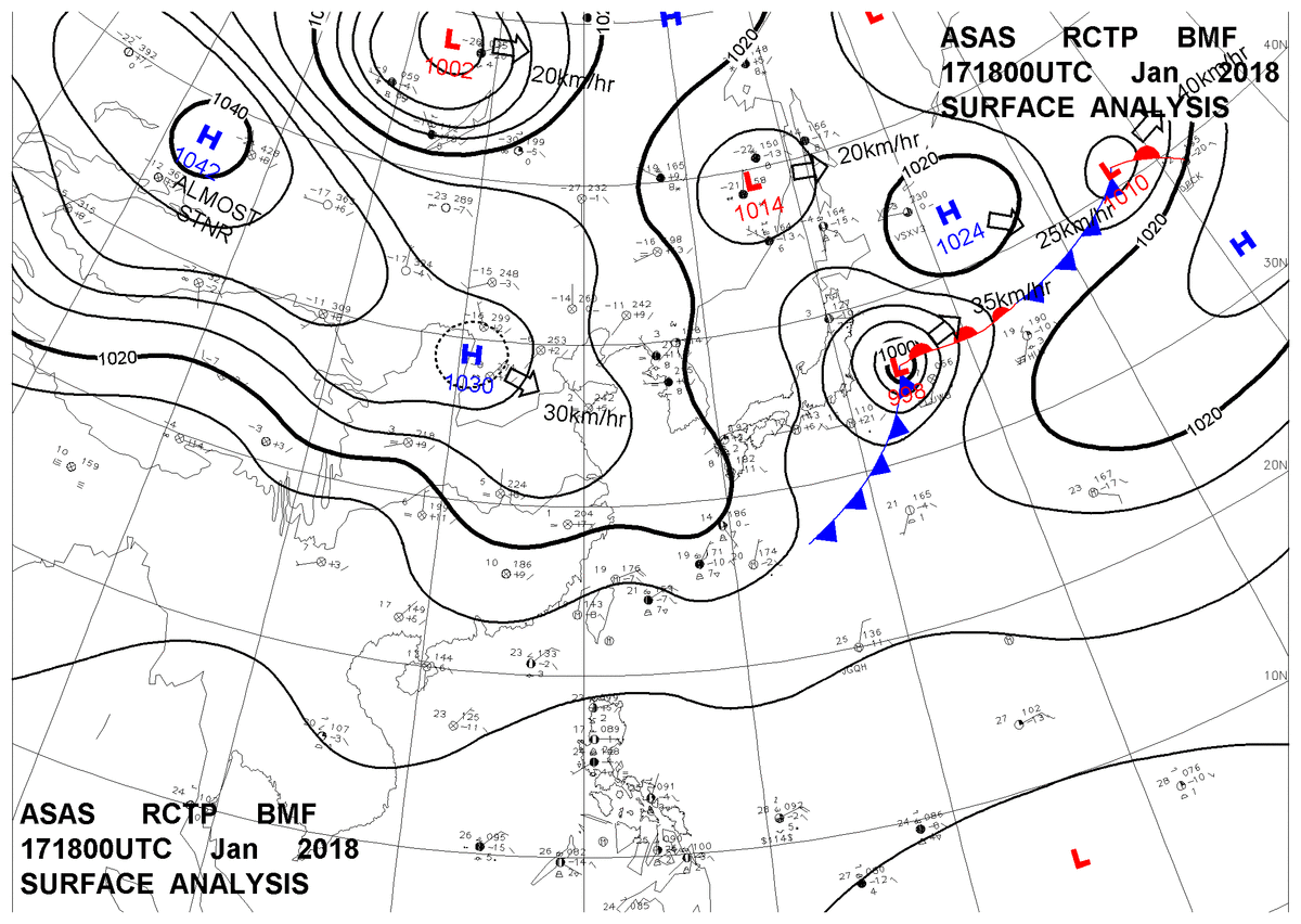 2018/01/17 18z sfcmap 天氣圖