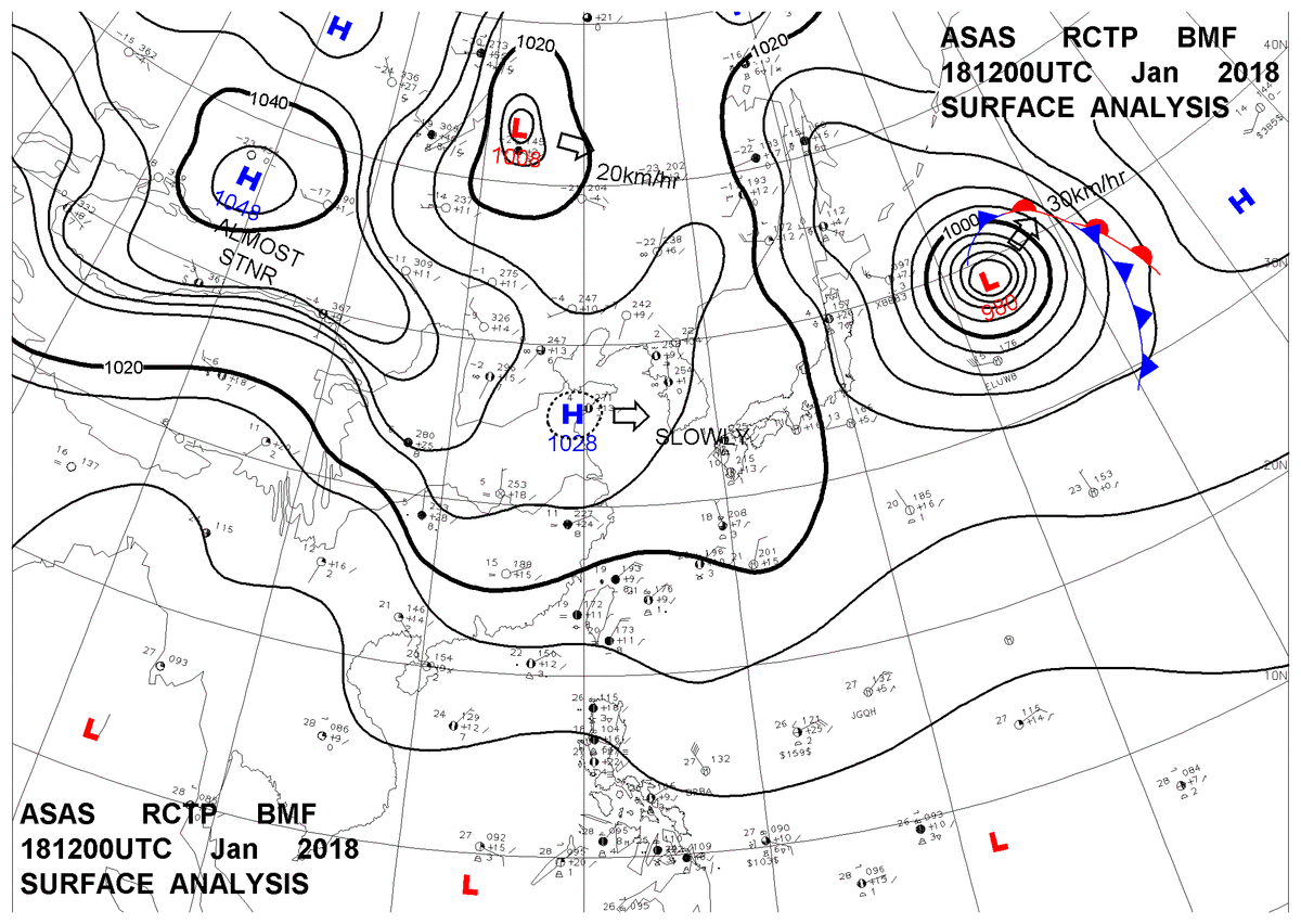 2018/01/18 12z sfcmap 天氣圖
