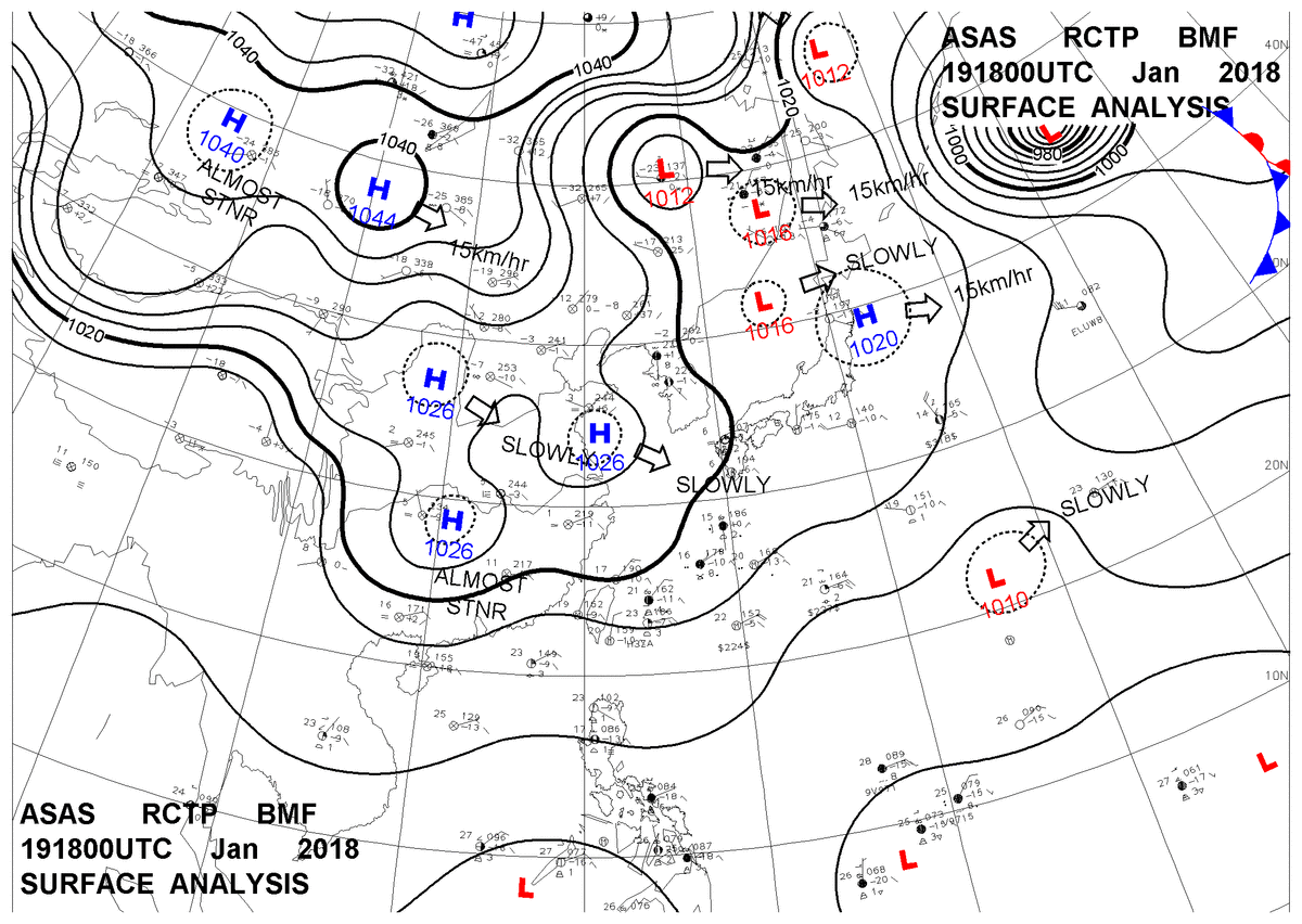 2018/01/19 18z sfcmap 天氣圖