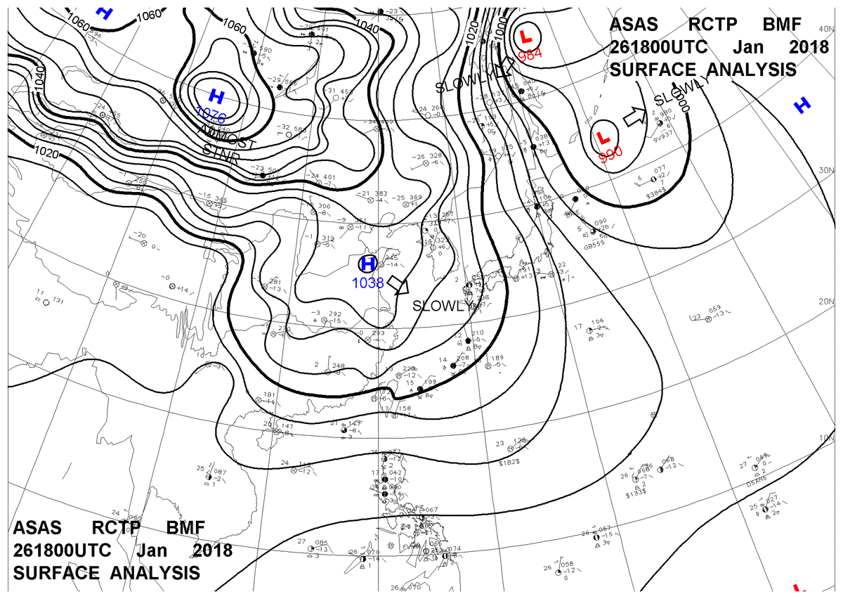 2018/01/26 18z sfcmap 天氣圖