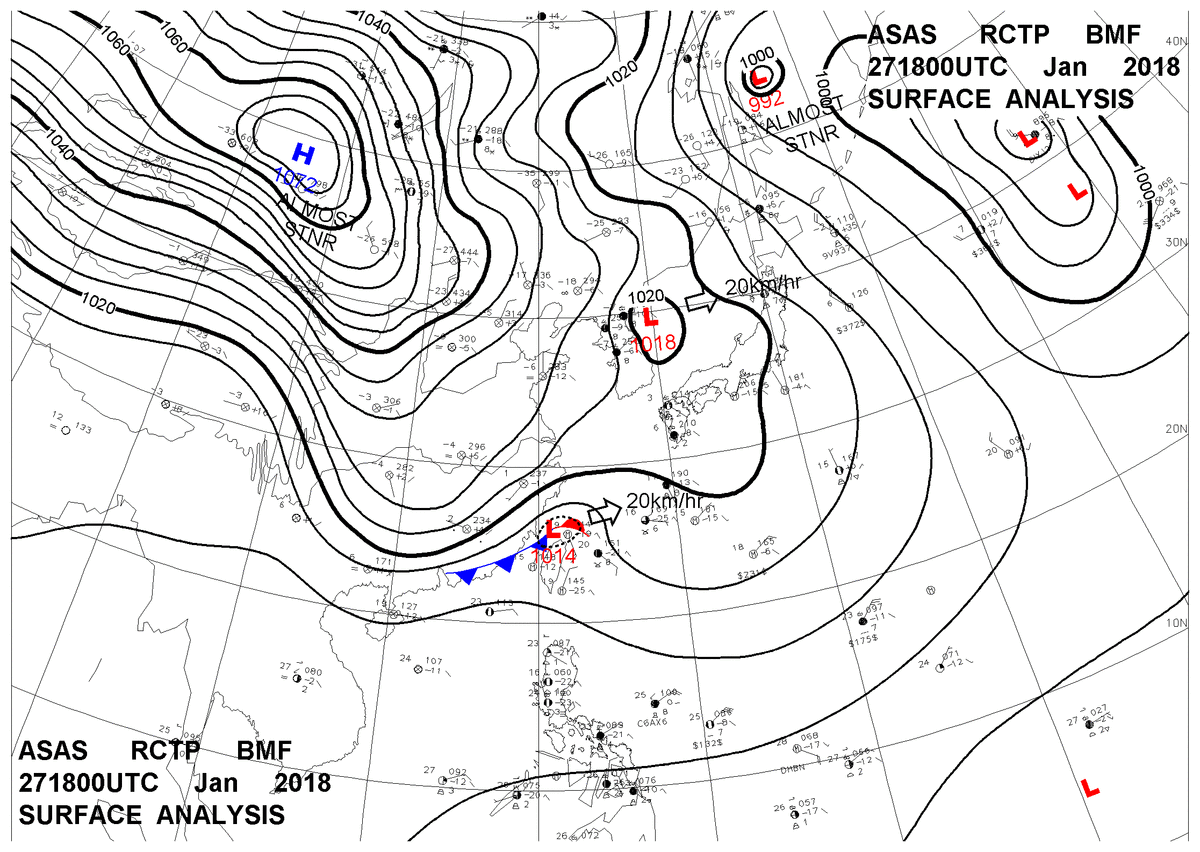 2018/01/27 18z sfcmap 天氣圖