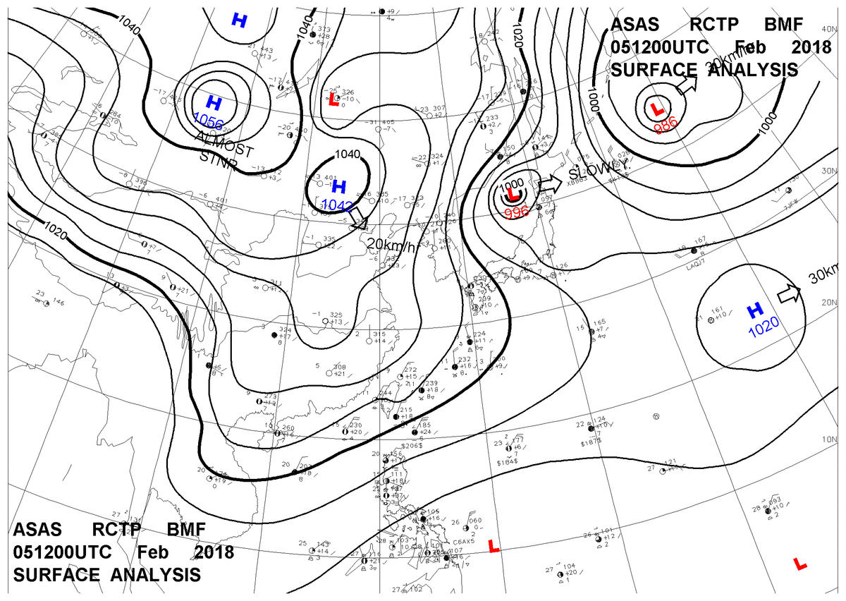 2018/02/05 12z sfcmap 天氣圖
