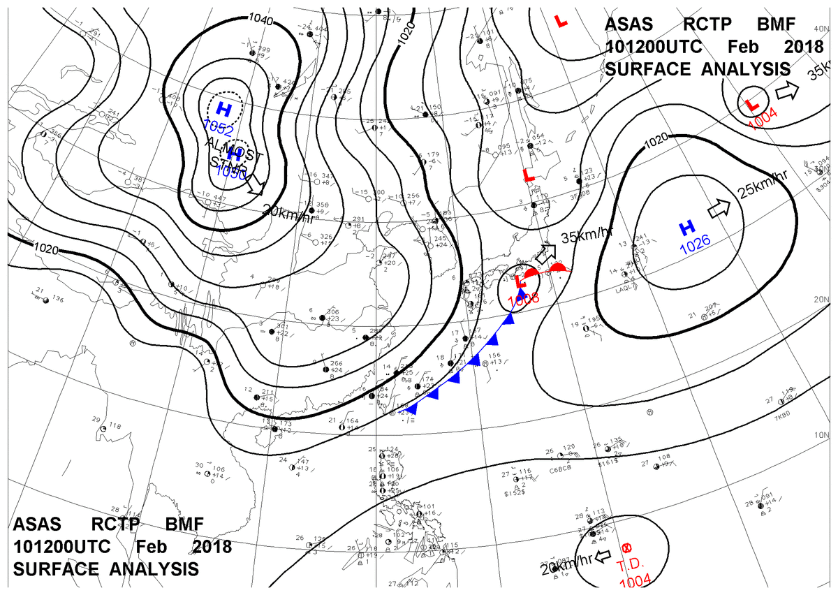 2018/02/10 12z sfcmap 天氣圖