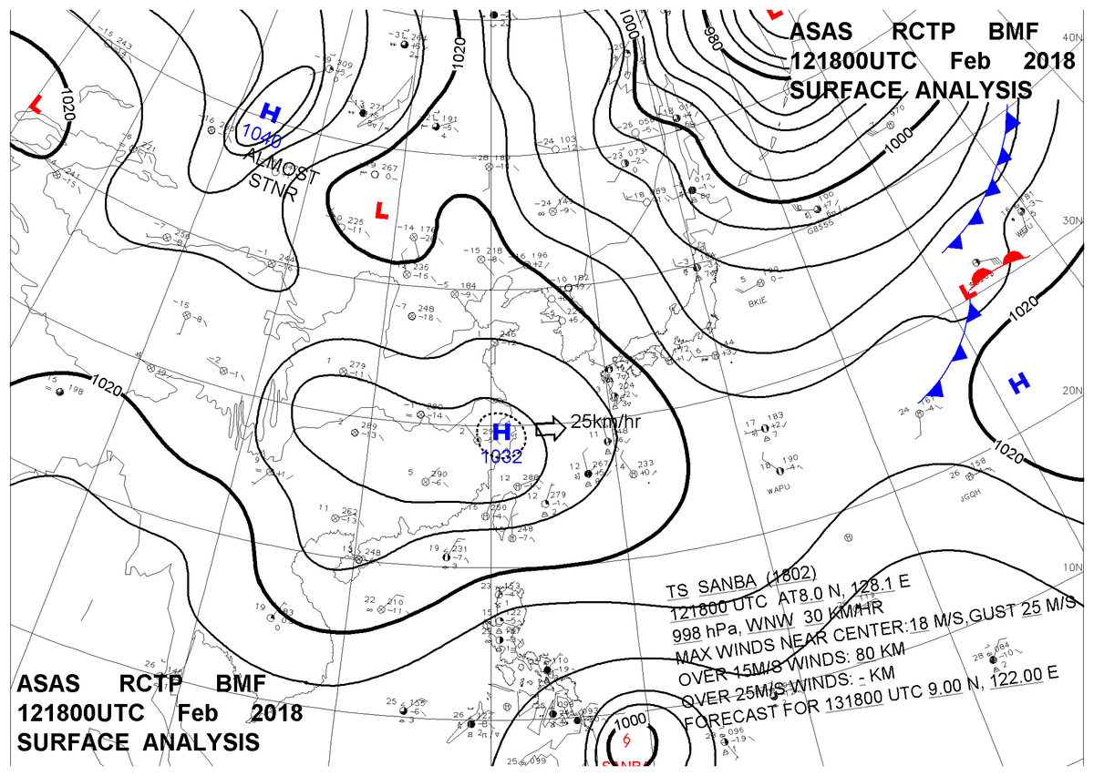 2018/02/12 18z sfcmap 天氣圖