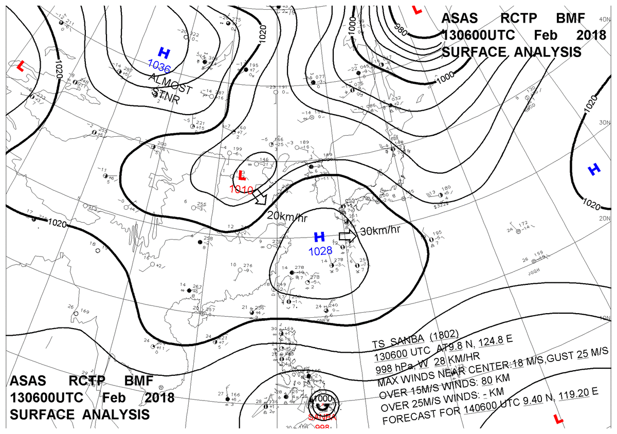 2018/02/13 06z sfcmap 天氣圖