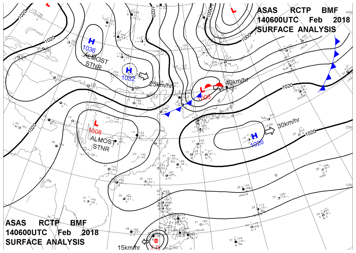 2018/02/14 06z sfcmap 天氣圖