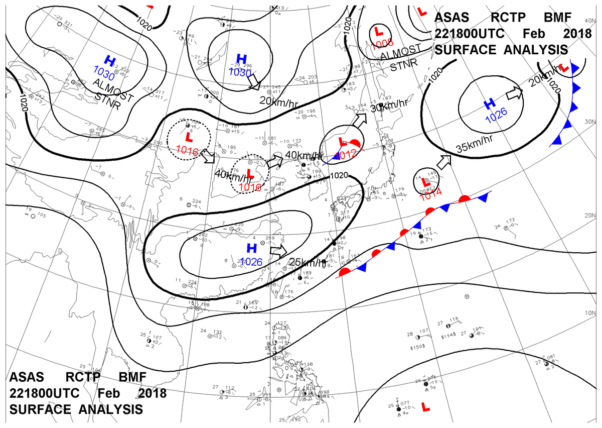 2018/02/22 18z sfcmap 天氣圖