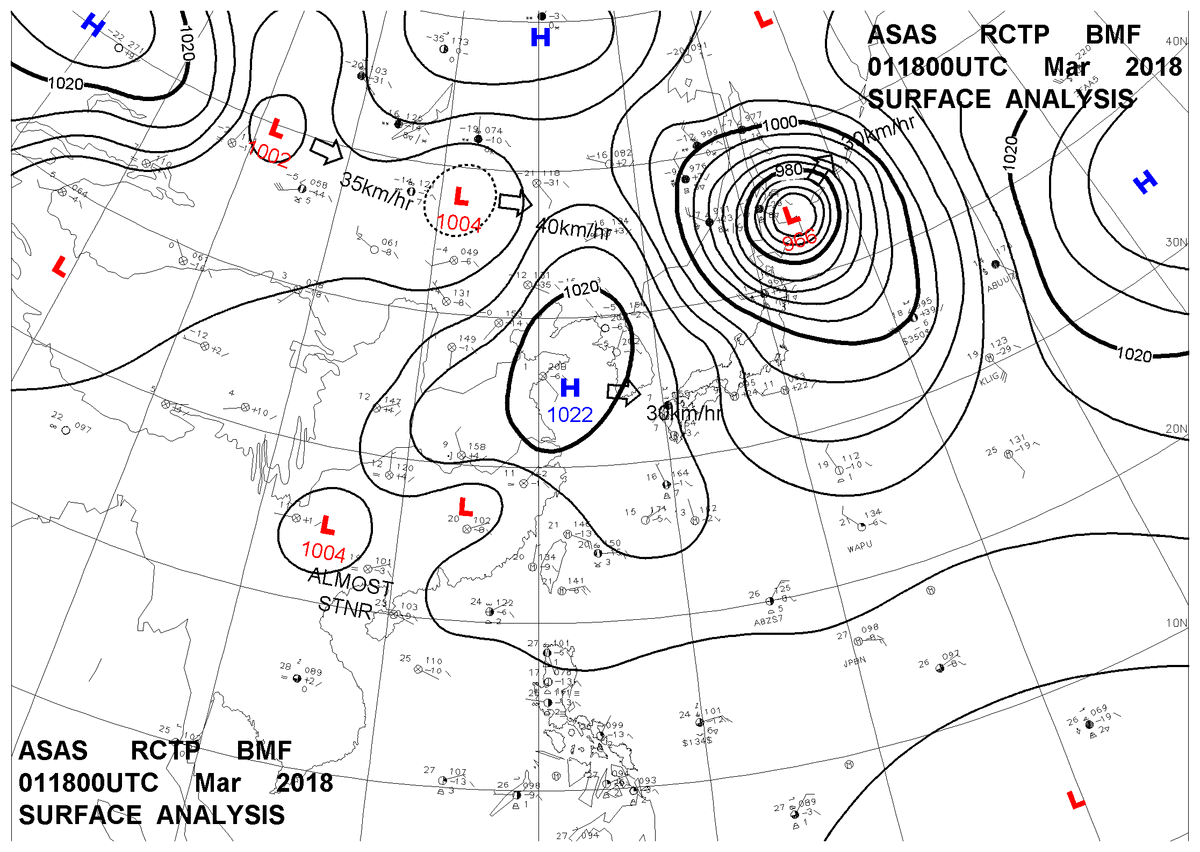 2018/03/01 18z sfcmap 天氣圖