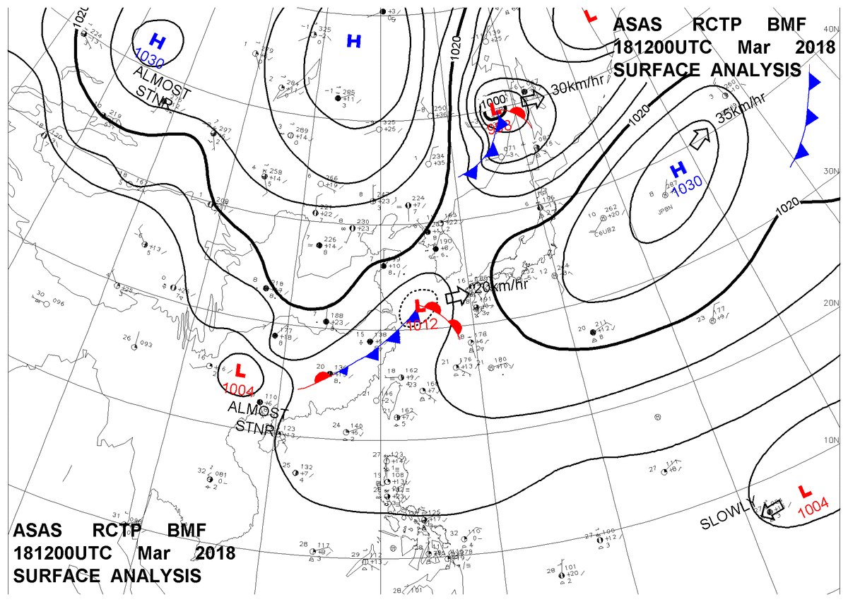 2018/03/18 12z sfcmap 天氣圖