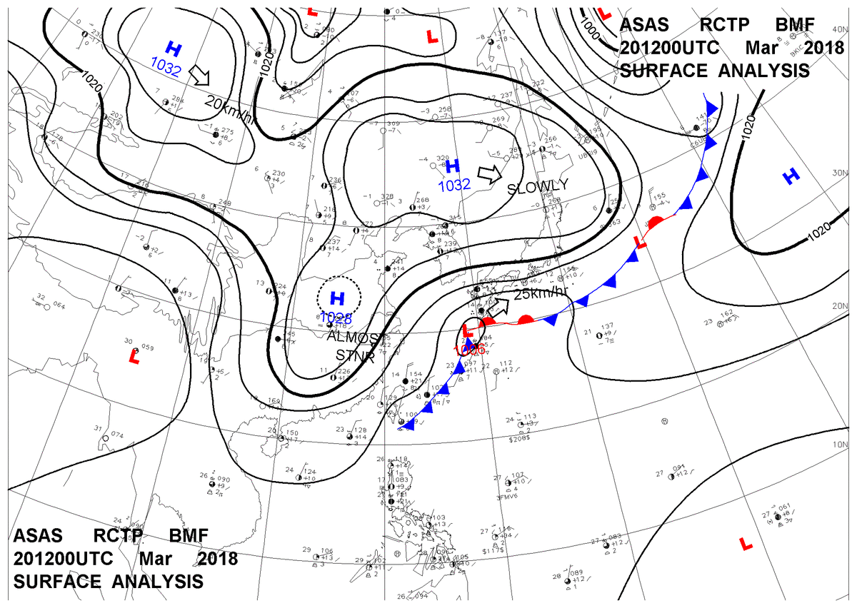 2018/03/20 12z sfcmap 天氣圖