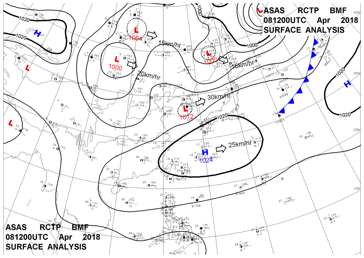2018/04/08 12z sfcmap 天氣圖