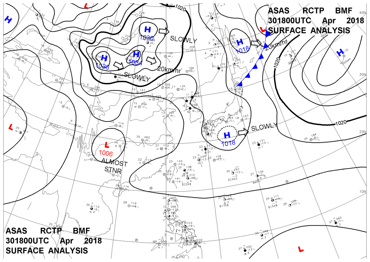 2018/04/30 18z sfcmap 天氣圖