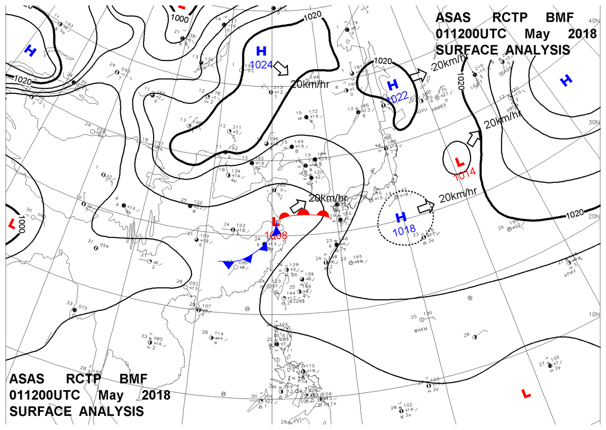 2018/05/01 12z sfcmap 天氣圖