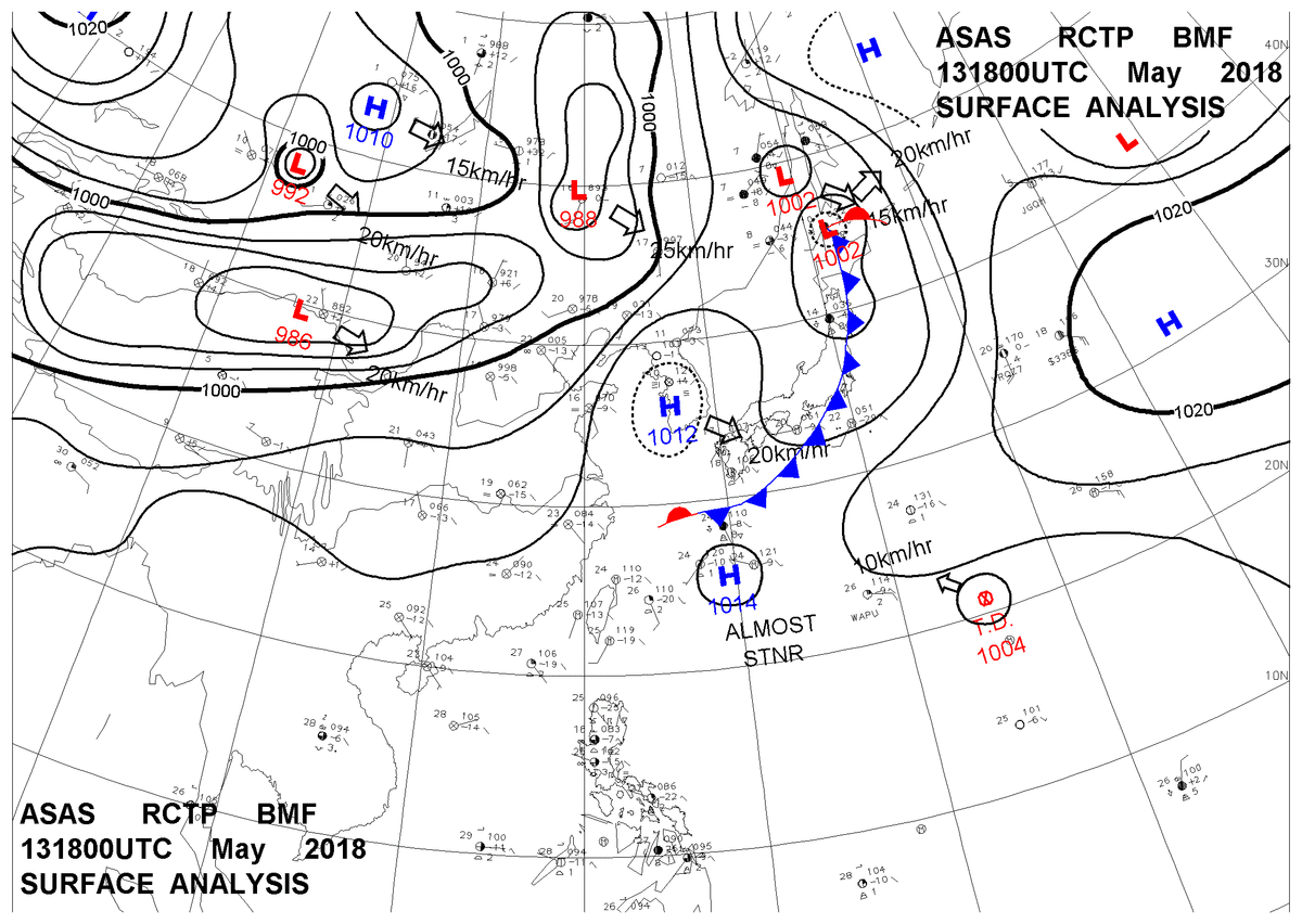2018/05/13 18z sfcmap 天氣圖