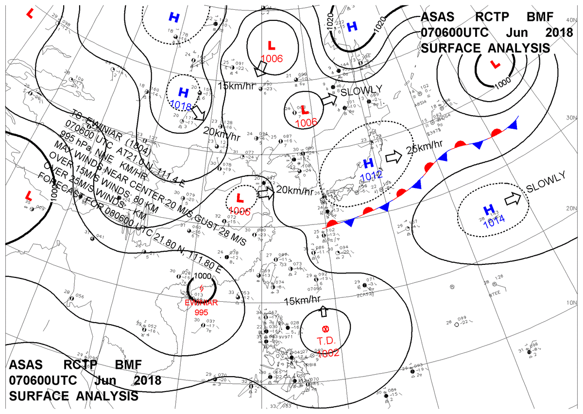 2018/06/07 06z sfcmap 天氣圖