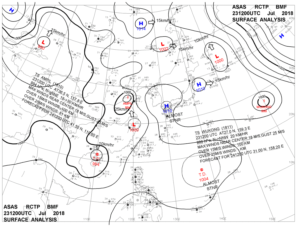 2018/07/23 12z sfcmap 天氣圖