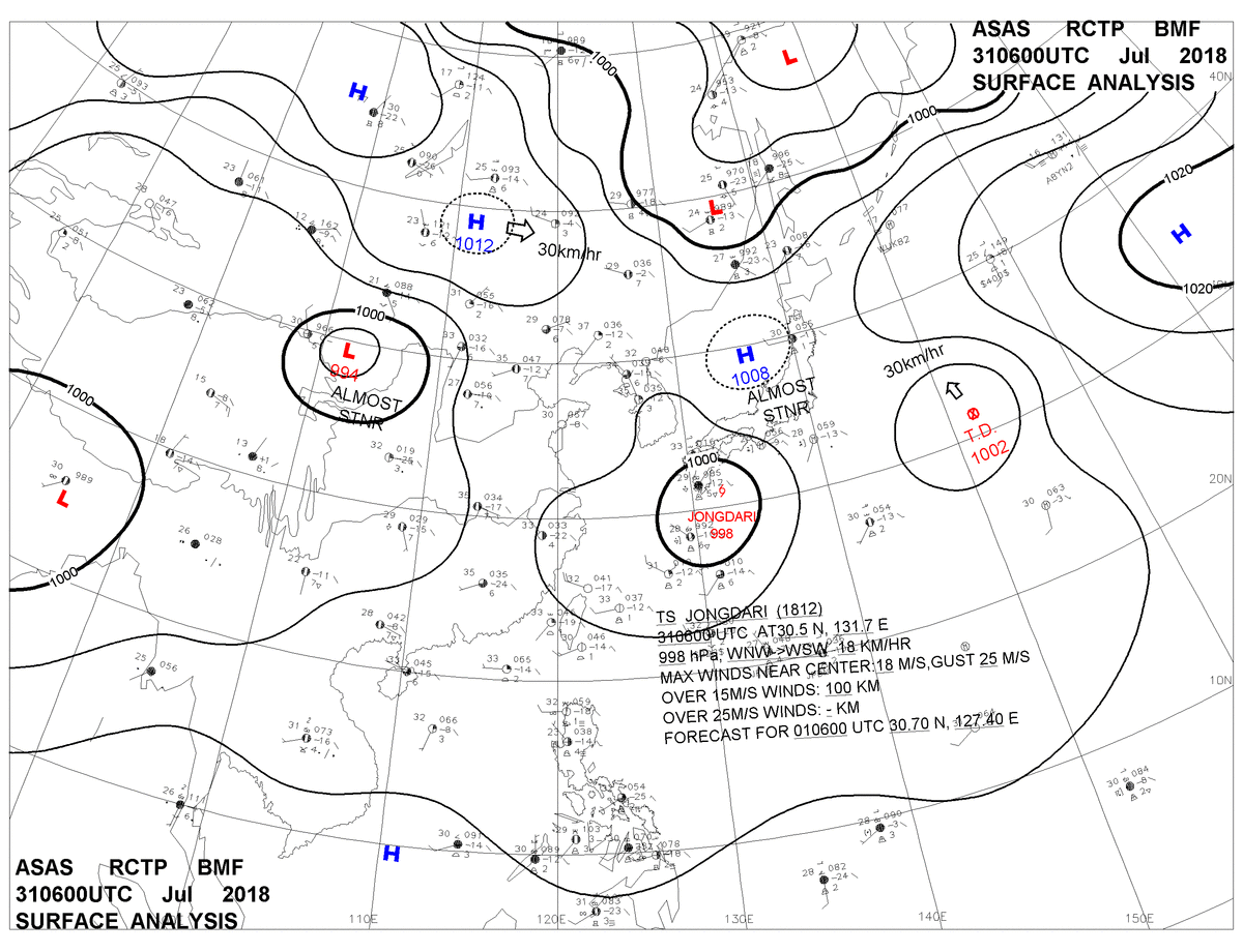 2018/07/31 06z sfcmap 天氣圖