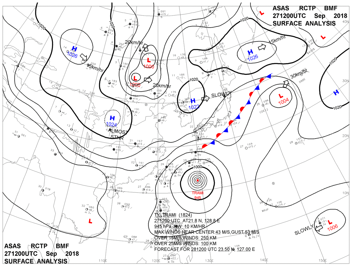 2018/09/27 12z sfcmap 天氣圖