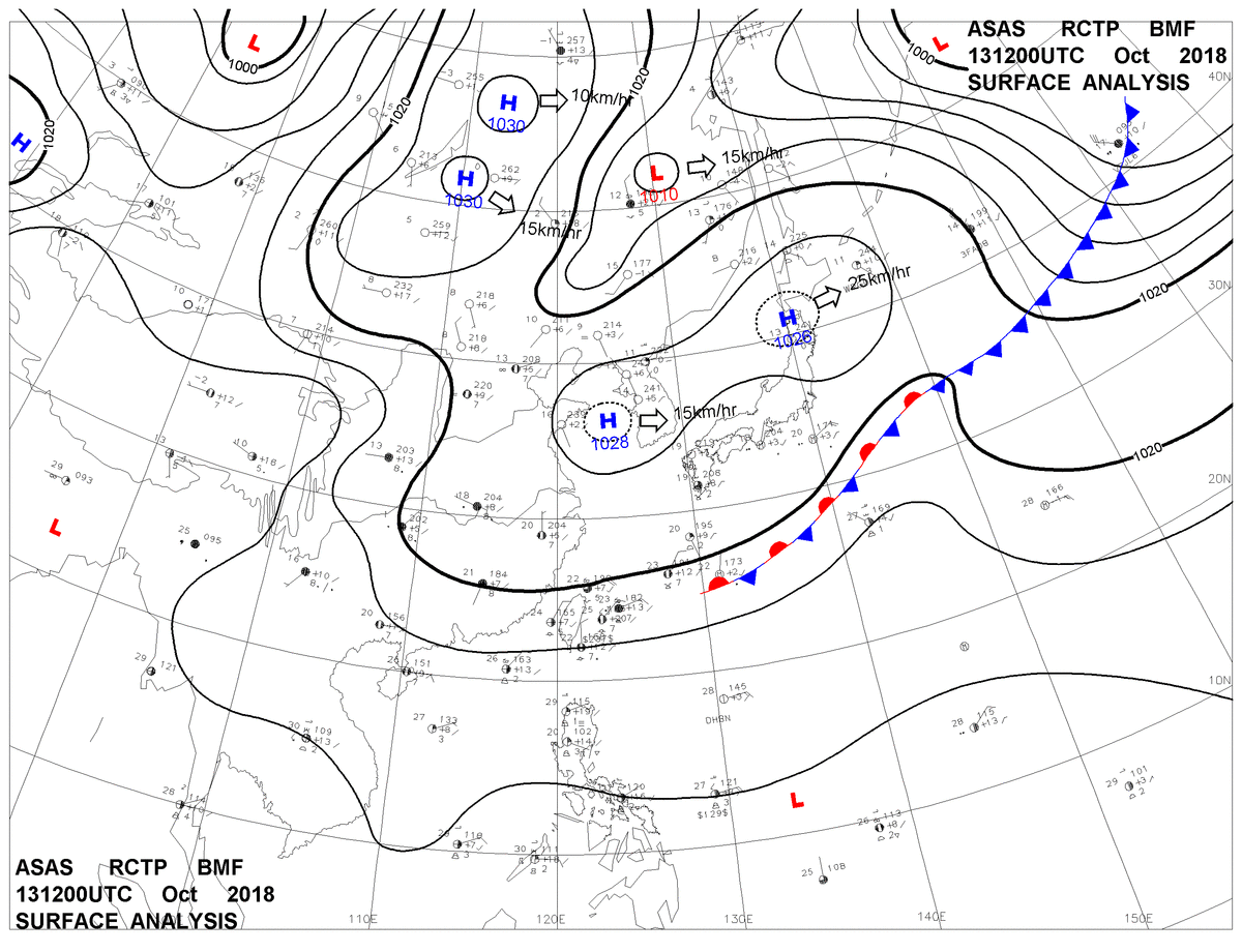 2018/10/13 12z sfcmap 天氣圖
