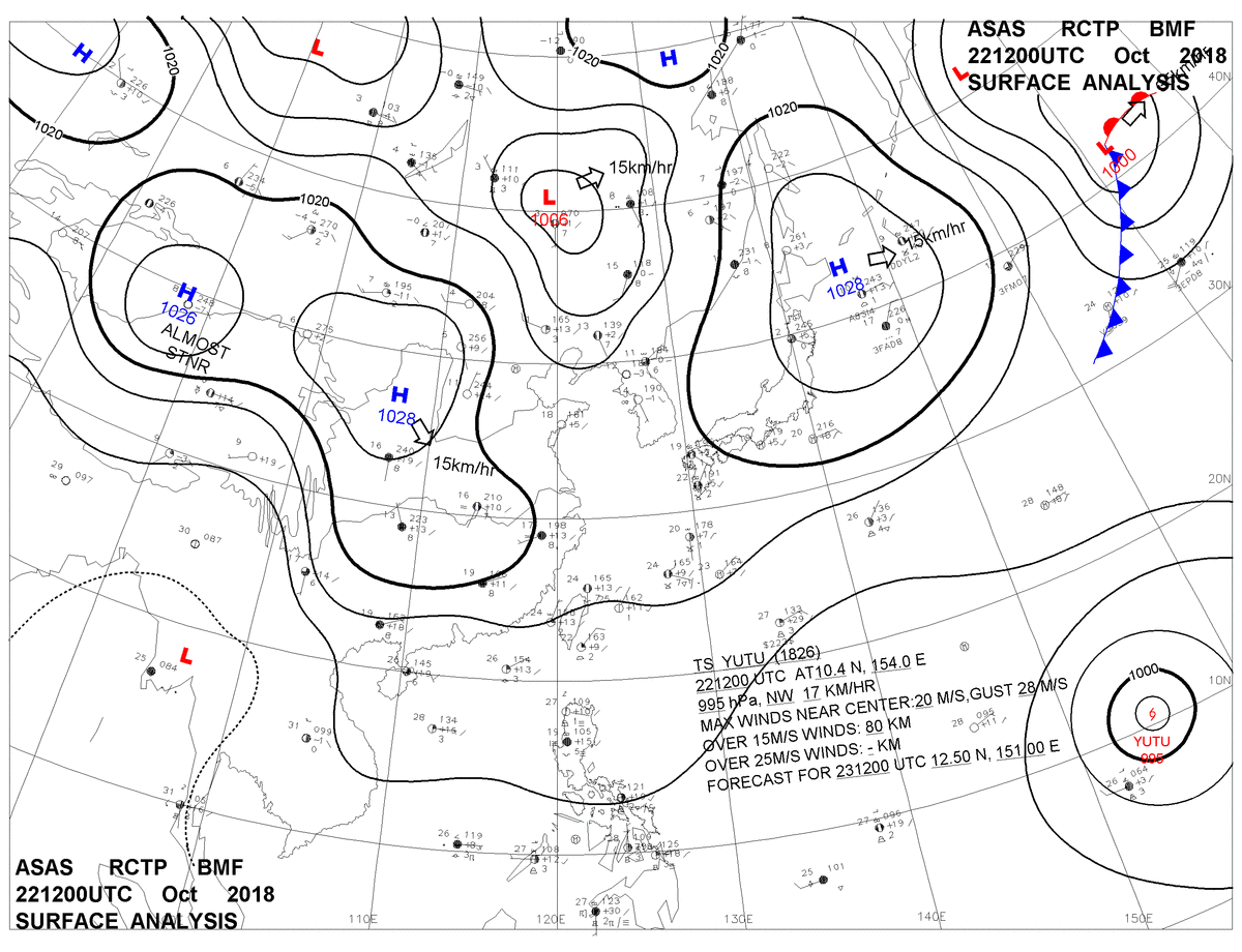 2018/10/22 12z sfcmap 天氣圖