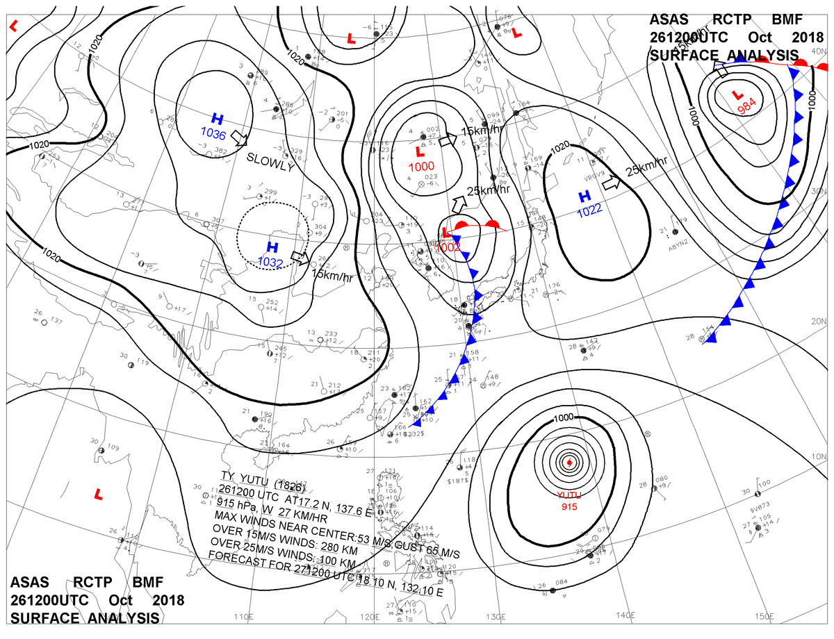 2018/10/26 12z sfcmap 天氣圖