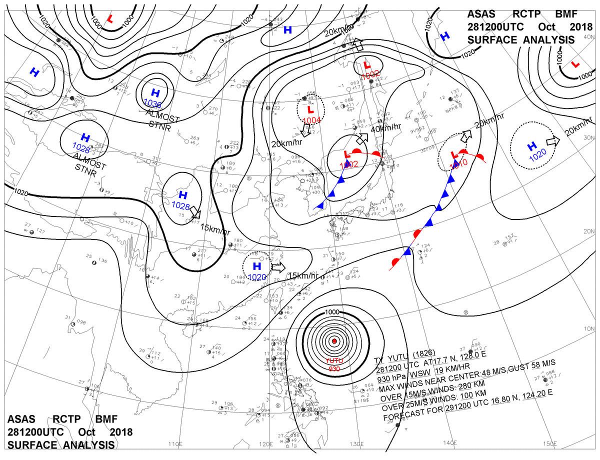 2018/10/28 12z sfcmap 天氣圖