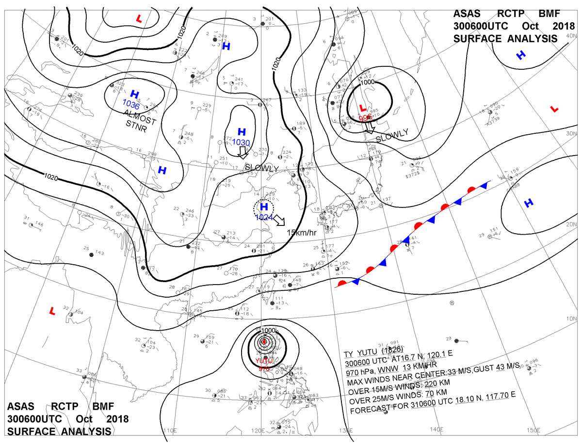 2018/10/30 06z sfcmap 天氣圖